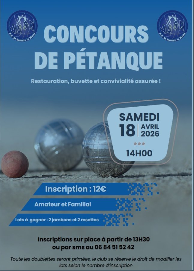 Le Samedi 18 Avril 2026 l'ASSR basket organise un concours de pétanque salle ERA.
